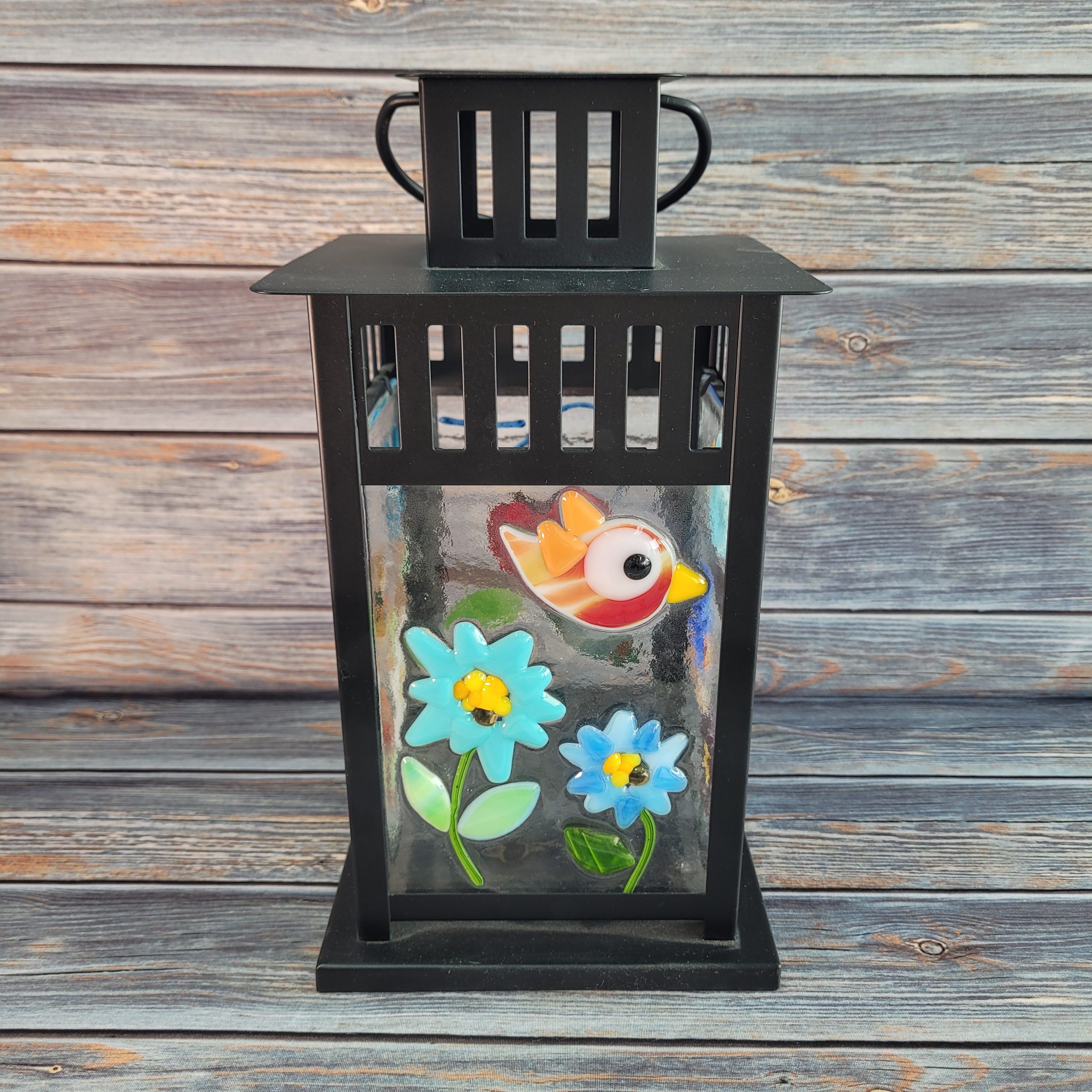 Join us in making a beautiful spring fused glass lantern. Choose from pre-cut pieces and a variety of colours and shapes to decorate a four-panel glass lantern with cute birds and beautiful flowers. Or, use glass pieces to create anything your imagination can come up with. The possibilities are endless! Everyone’s comes out uniquely beautiful! Put a candle or twinkly lights in your lantern when you take it home and watch the beauty of your glass creation shine brilliantly!